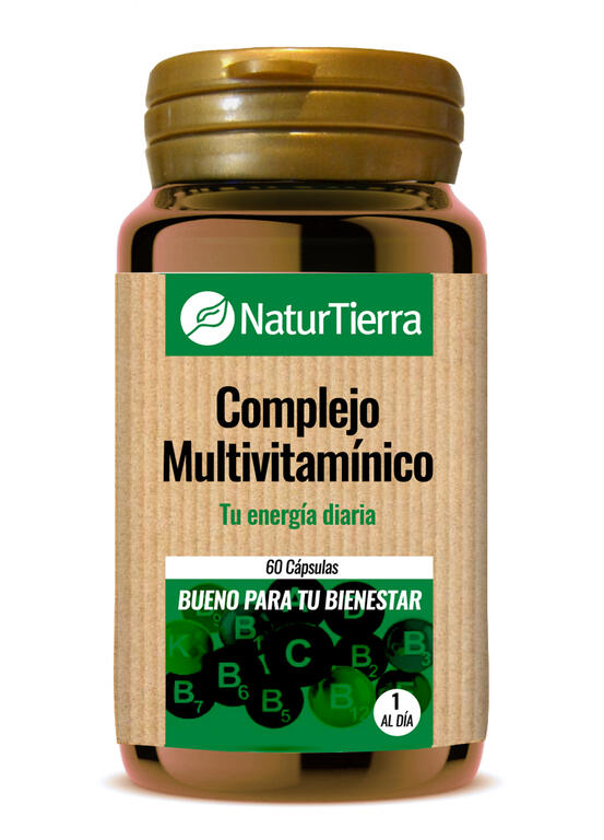 Complejo multivitamínico de NaturTierra es un complemento alimenticio elaborado a base de vitaminas y minerales. Contiene vitaminas del grupo B que junto con el Hierro contribuyen al metabolismo energético normal y ayuda a disminuir el cansancio y la fatiga.